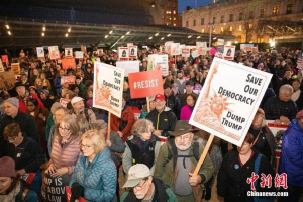 当地时间12月17日,两千多人在美国旧金山市中心集会,支持弹劾总统特朗普。 中新社记者 刘关关 摄