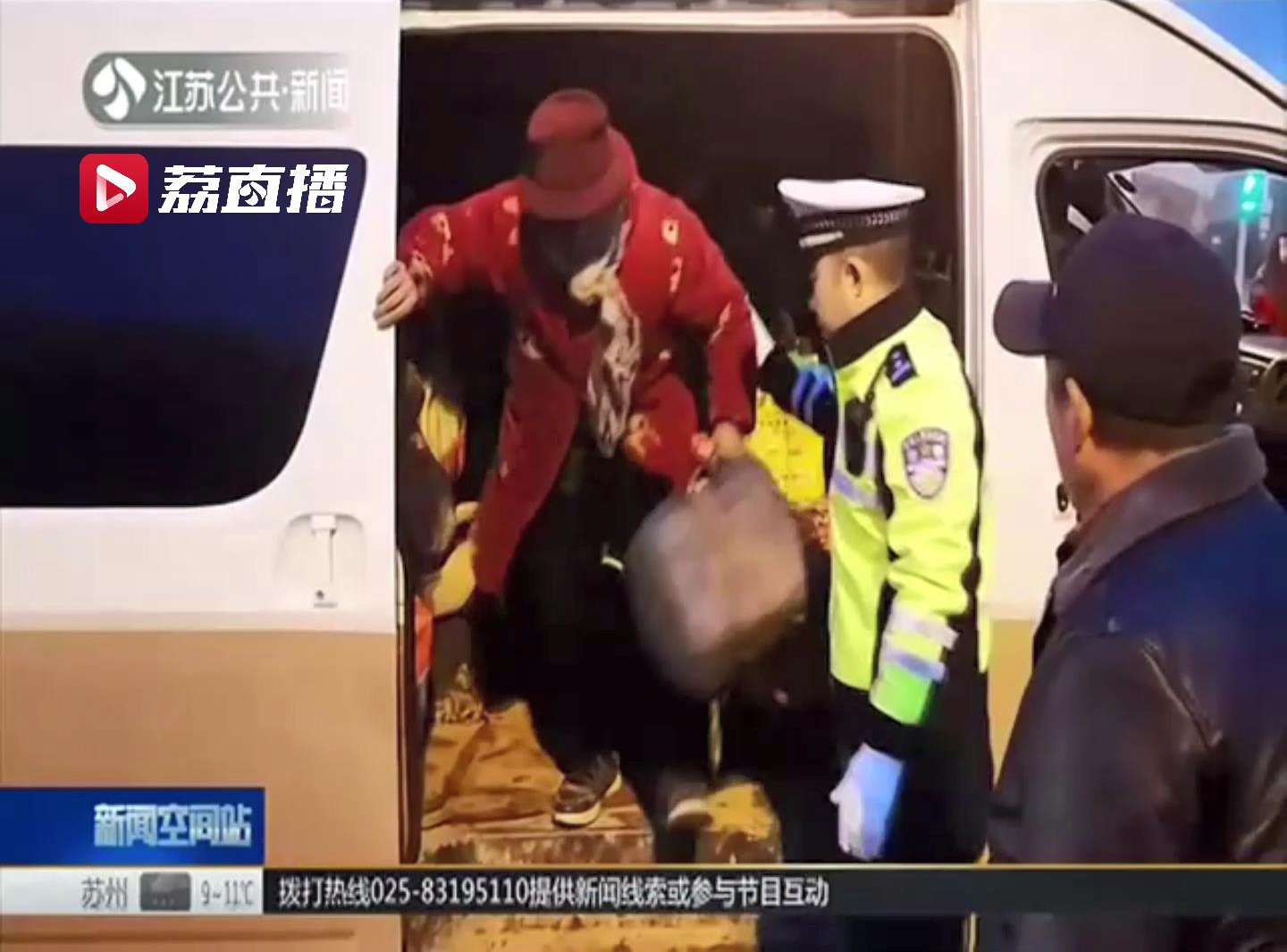 执法现场,徐州市交警支队云龙大队民警教育道:“这是为了你们好,这拉这一车人,如果发生任何交通事故,你想想可怕不?这比一辆公交车、长途大巴还厉害,听懂吗?”