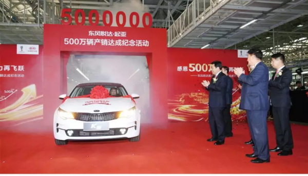 △2018年4月9日,东风悦达起亚第500万辆车下线。