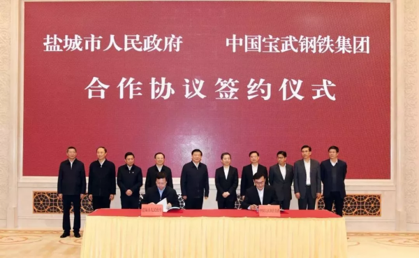 2018年11月,盐城市政府与中国宝武钢铁集团有限公司签署合作协议,在盐城滨海港工业园区新建2000万吨级“绿色、智慧、精品”钢铁生产基地。项目的成功签约,是盐城接轨上海取得的重大战略成果,对推动盐城工业化加速期高质量发展具有重要的里程碑意义。