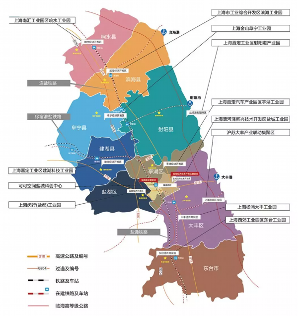 盐城与上海地缘相近、人文相亲,有着割舍不断的历史渊源和日久弥新的特殊情谊,盐城接轨上海中,加快打造“一区三基地”——北上海“飞地经济”示范区,上海科创成果转化基地、优质农产品供应基地、生态旅游康养基地。