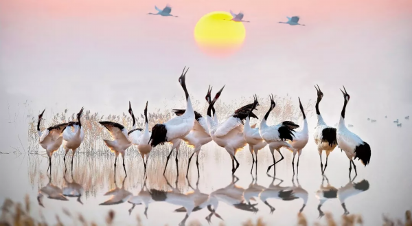 盐城被誉为“东方湿地之都,仙鹤神鹿世界”。每年来此越冬的丹顶鹤,占中国越冬种群的80%以上。