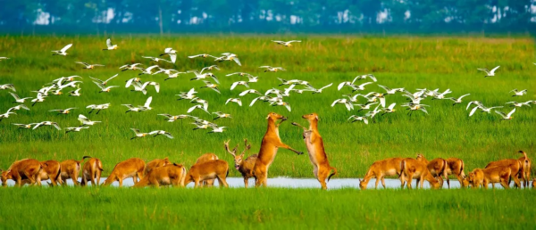 大丰麋鹿国家级自然保护区,麋鹿由1986年引进的39头发展到而今的4556头,占世界种群数的60%。中华麋鹿园在苏北率先创成国家5A景区。