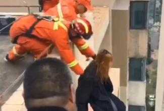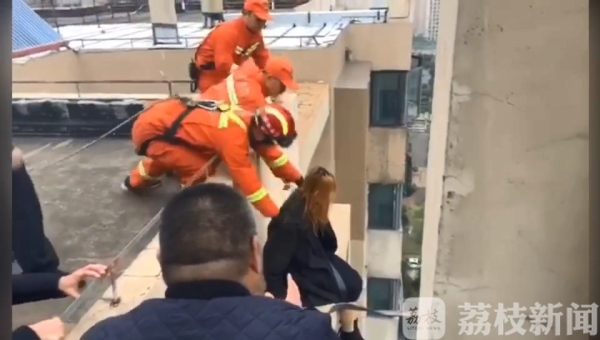 12月25日14点,常州消防指挥中心接到市民报警称,有一名女子在某小区住宅楼的18层准备跳楼。消防人员立即赶往事故现场开展救援。