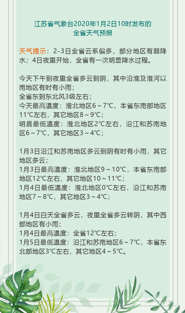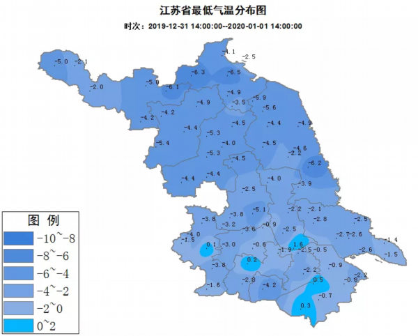 昨天是新年第一天,气温依旧楚楚“冻人”,元旦早上全省最低气温-6.5℃(连云港)。