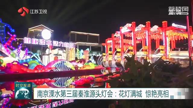 在南京溧水,第三届秦淮源头灯会吸引了大批游客,近百组灯盏点亮全城。