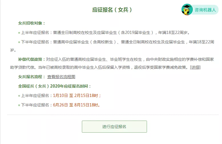 全国征兵网2020年征兵报名通道开启,确定2020年两次征兵。