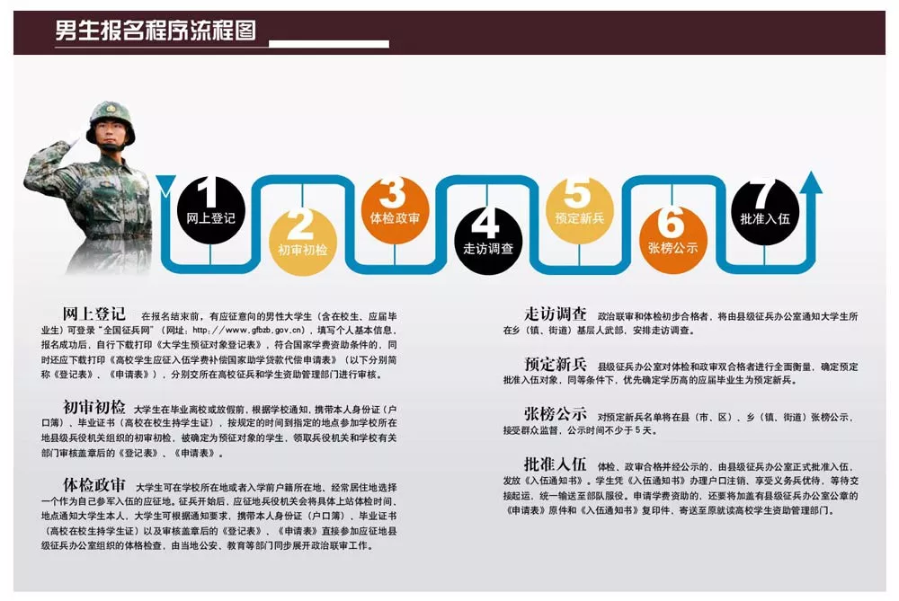 在这个时候请详细阅读兵役登记须知。了解自己的各方面情况是否达标,这能避免后续工作出现的很多麻烦哦!