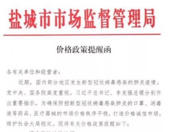 昨日,盐城市市场监管局在官方微信公众号,对相关单位和经营者发出价格政策提醒。