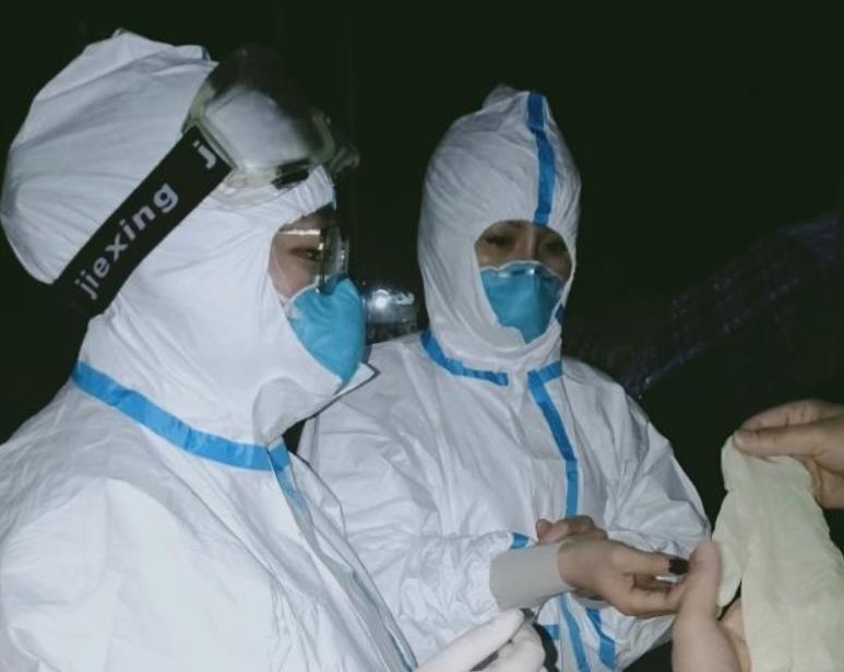 郭琼在医生指导下穿防护服 1月27日凌晨3时,两辆120急救车开到天山绿洲小区,按照计划,大人和孩子将分乘急救车前往医院,和平街道办事处、天山社区的干部职工到现场进行守护、配合,确保此次送医行动万无一失。 当大人孩子做完消杀并穿上防护服从楼上下来后,问题又来了,那就是急救车只有驾驶员一人,女孩单独坐在车内,谁来照顾谁来陪? “我是党员,让我来吧!”一个柔弱的女声响起,却振聋发聩于大家耳边。 请战声来自于天山社区工作人员郭琼,28岁,是2020年1月9日刚刚转正的新党员。 “说实话,我当时没想那么多,就觉得自己是一名党员,应该冲上前。再加上我年轻,免疫力好,刚结婚没有孩子,也没有后顾之忧。而且照顾的是女孩,女同志应该更方便些。” 就这样,主动请战的郭琼穿上了防护服,和同事赵伟伟一起走进了急救车…… 郭琼事后坦言,换防护服的时候,她的心里开始发慌,所以特别配合医护人员给她做的消杀,“从医院出来后,我开始有点后怕。因为从换上防护服就一直没跟家里联系,所以回家后怕他们担心,也就没跟他们说这事,在家门口把自己全身喷了酒精才敢进门。”