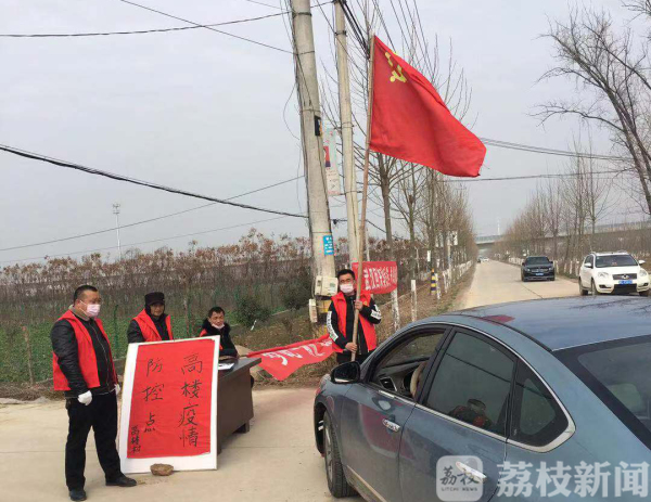 “面对新型冠状病毒感染的肺炎疫情的严峻形势,看到我们党员冲在疫情防疫的第一线,有谣言时,就带头辟谣。村里百姓都吃了一颗定心丸,心里也没那么恐慌了”。在党旗飘扬的村头执勤卡口,梁集镇宣传委员王磊说道。大年初一开始,睢宁县每个村口都党旗飘扬,村口穿着红马甲的党员对过往车辆登记排查、劝导群众。与时间赛跑,同疫情决战,守护人民群众的身体健康和生命安全。这一刻,飘扬的党旗分外鲜艳!