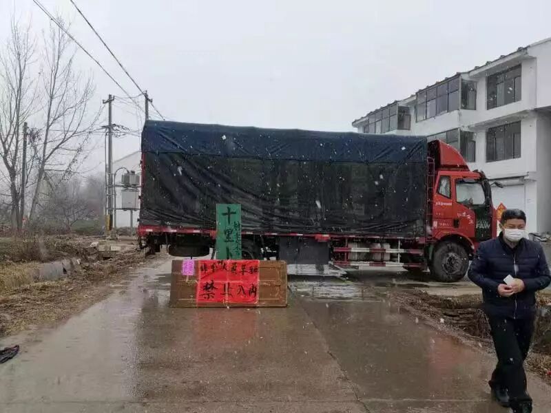 (党员中心户和党员志愿者封锁入村路口)