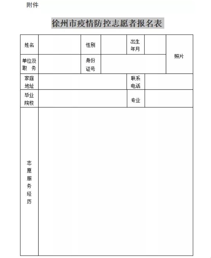 即日起,凡满足招募条件的志愿者均可填写《徐州市疫情防控志愿者报名表》(见附件)并发送至市志愿者联合会邮箱(jsxzzyz@126.com)报名。联系人:李向楠,联系电话:83732243、13852101001。
