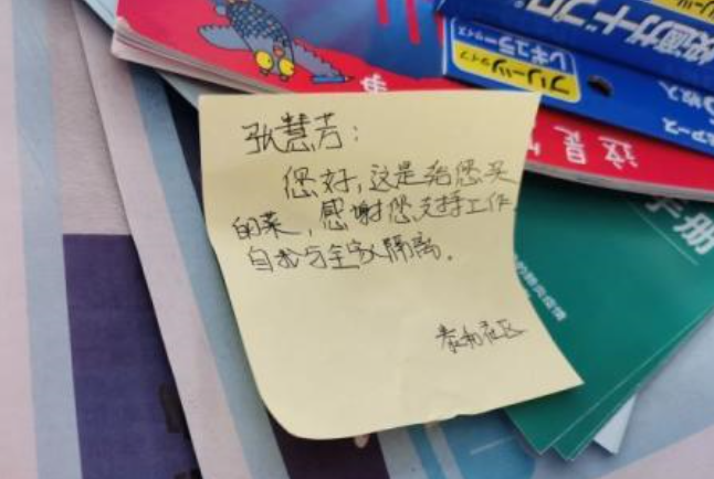 1月30日上午,泰州市海陵区京泰路街道湖北返乡居家隔离的张女士一家,收到了社区工作人员送上门的几大袋物品。让她没有想到的是,除了蔬菜、日用品,社区还贴心地为两个孩子送来了“华夫饼”“妙芙”等小零食和科学常识、儿童漫画等图书。这让张女士非常感动,她当即将收到的物品拍照发到了社区微信群里。