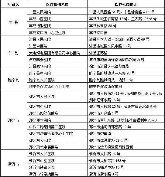 徐州市设有发热门诊医疗机构名单