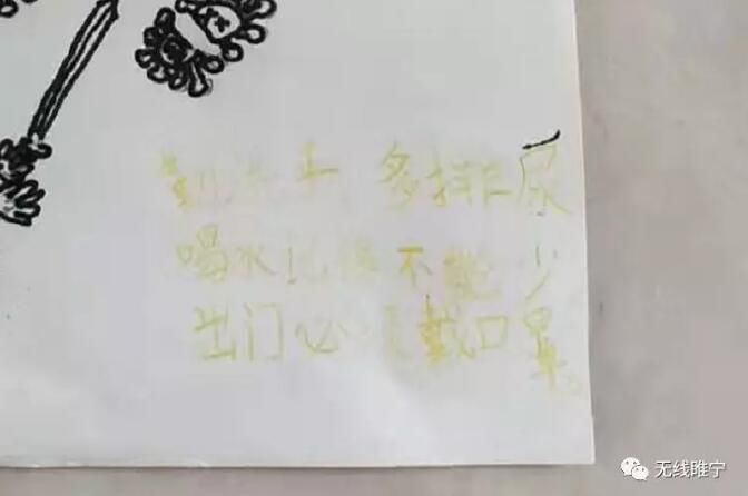仲浩瑄还自创了一首疫情防控的顺口溜:勤洗手多排尿,喝水记得不能少,出门必须戴口罩。