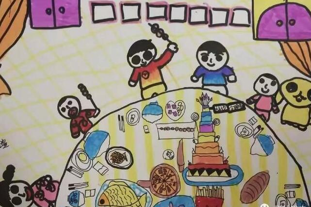 7岁生日时的热闹景象。仲浩瑄画