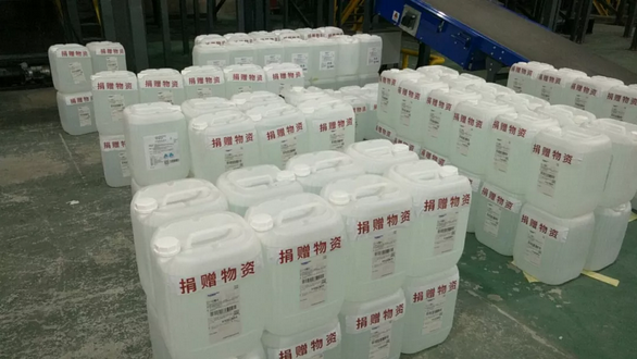 1月28日下午2点半左右,汪经理等3人与邮件处理中心驾驶员王永林一起戴好口罩来到生物公司、准备到仓库搬运货物时,只见前来迎接的工人将他们直接带到生产车间外边,请大家就在车间外边上货。当大家一起搬运整桶的消毒液时,这才发现所有的产品都是热乎乎的。原来该公司的库存产品已经全部销售完了,捐赠产品是从生产线上下来后不经仓库、直接装运上邮车的。