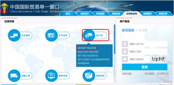 企业自助打印原产地证书需登录中国国际贸易单一窗口(https://www.singlewindow.cn/),进入海关原产地证申请模块。