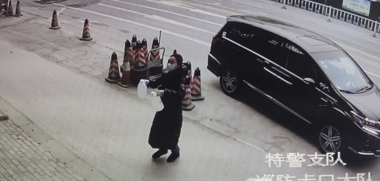 我苏网讯 2月3号下午,南京市公安局特(巡)警支队巡防卡口大队石门坎警务查报站民警正在站房对面进城方向执勤,这时一辆商务车停在查报站门前,车上下来一名女子急匆匆地将两大瓶医用酒精塞到民警手里便转头离开。民警急忙追上再三道谢并希望好心市民留下联系方式。市民再三挥手拒绝,只留下一句:“你们辛苦了。”