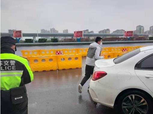今天(2月7日)下午16:30分左右,南京交警高速六大队上坊公安开展疫情检查,一辆白色奔驰小轿车检查完体温后缓缓驶到执勤民警身边停了下来。