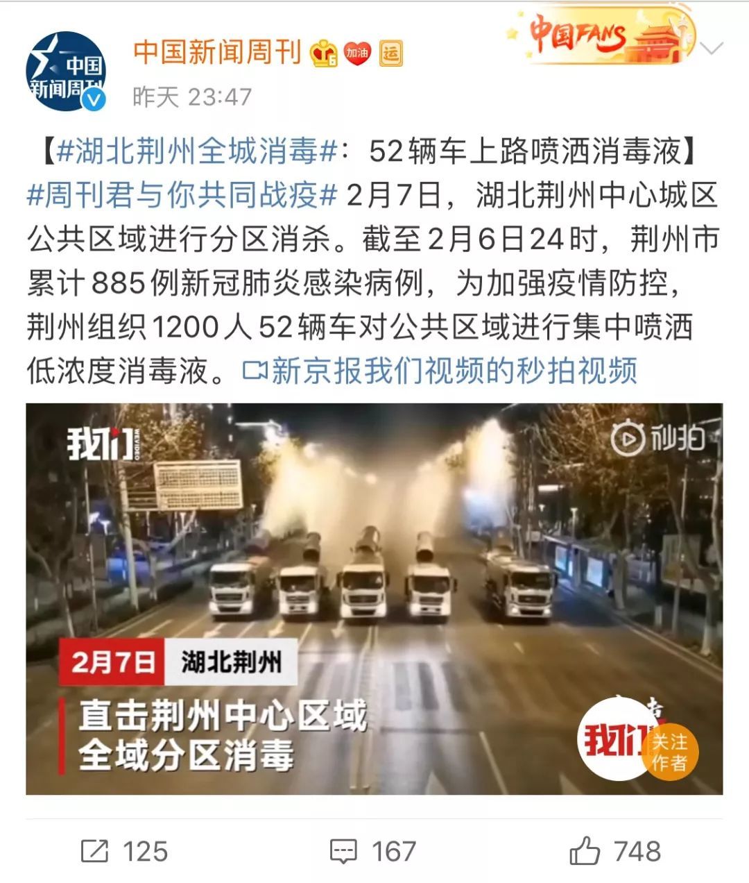 据南京市城管局,视频里面的画面不是南京,南京环卫部门没有派出过雾炮车消杀。目前主要是环卫人员背着消杀壶对一些公共区域、卫生死角、中转站、公厕等处进行消杀。据悉,如何消杀是南京市新型冠状病毒感染的肺炎联防联控工作指挥部统一安排。
