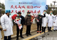 下午三点多,3人走出了五院隔离区,医护人员为他们献上了鲜花。
