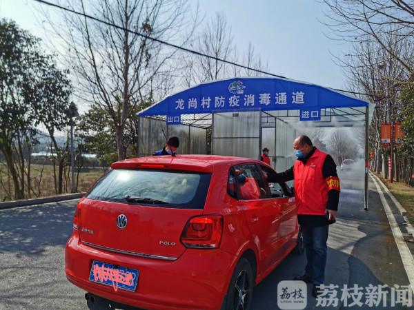 据了解,因该社区临近S122省道,通往江宁城区较为便捷,为给前往S6宁句线、省园博园等重点项目工程等外来务工人员车行带来方便,该社区相关工作人员连夜加班组装,建成了一个为外来务工人员和本村上下班村民的车辆进行消毒的“绿色通道”。“该通道采用烟雾专利技术与自动控制模式,将消毒液雾化形成微米级气溶胶烟雾,形成烟雾缭绕的通道。人员检测过体温后,在社区志愿者的引导下,车辆从消毒通道缓慢通过,即可达到全方位的快速消毒杀菌效果。”龙尚村相关人士告诉记者。