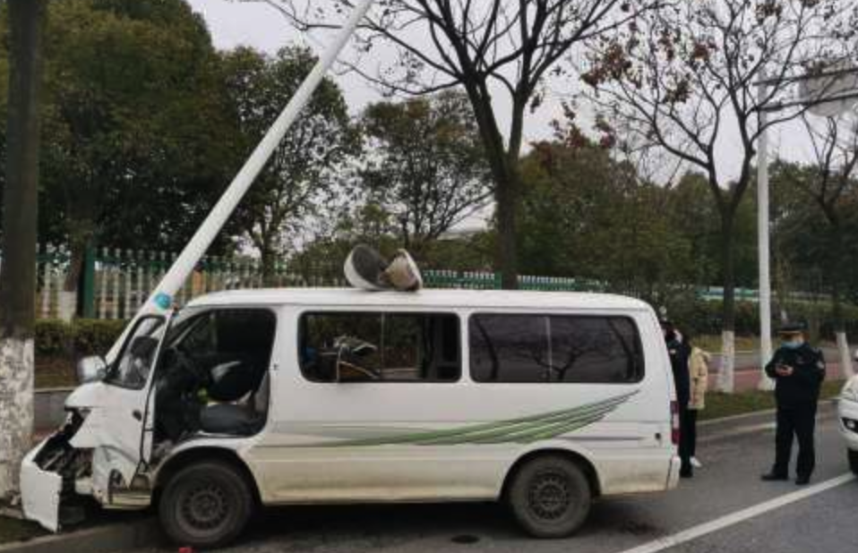 2月8日下午3点钟左右,盘城大队执法人员在前往农贸市场巡查途中,在龙山南路与龙泰路交界处,发现在右前方100米处,有一辆面包车横停在路边,疑似发生交通事故。刘昌盛和执法队员们赶忙调转方向来到事发现场后发现,面包车一头撞在了路边的路灯杆上,灯杆已被撞倾斜,灯泡重重地砸在了面包车顶部,车内一位老者满脸鲜血,还有一名中年驾驶员和一名孩子,三人均处于昏迷状态。