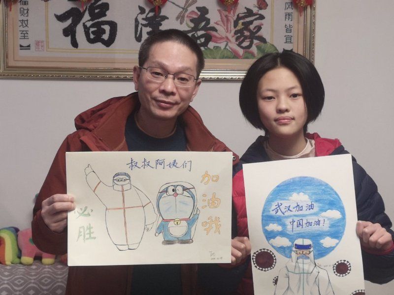 国家中医医疗队(江苏)南京市中西医结合医院放射科唐晨虎主任出发前,女儿亲笔手绘助威图为他送行!