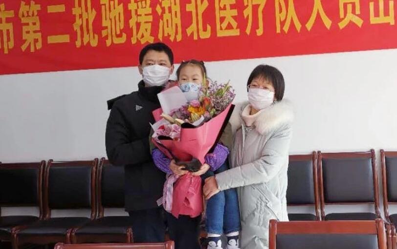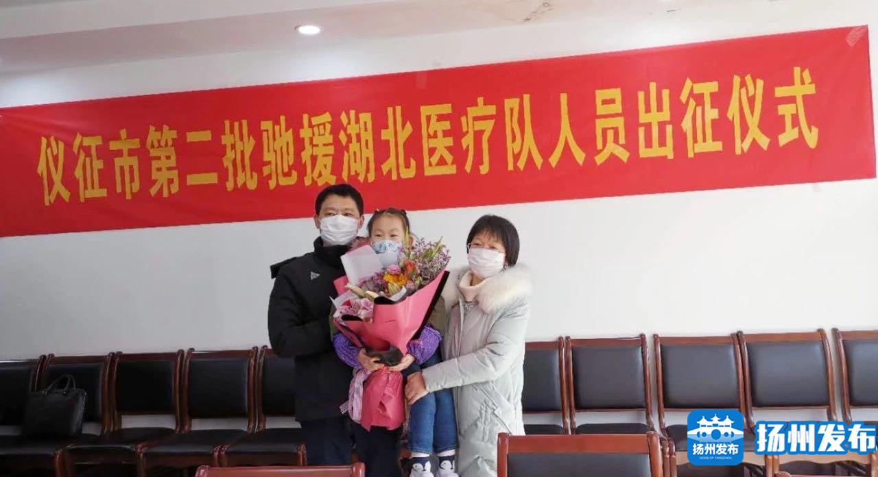 昨天一大早,金玉东就早早将妻子送到了集合地。清晨的仪征很冷,一路上,金玉东始终沉默着。下车后,不善言辞的他帮妻子拉了拉衣领,半天才憋出一句:“好好照顾自己,家里有我呢。”李宝川则笑盈盈地安抚着丈夫:“你放心,我是医生,知道怎么保护自己,等疫情得到控制,我一定会安全回家的!”