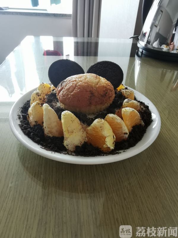 除了生日歌,队友们还为倪萍萍定制了生日蛋糕,“生日蛋糕是用鸡蛋糕、奥利奥饼干和橙子做的,感谢她们的用心!”倪萍萍说。