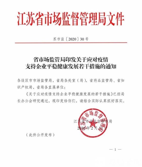我苏网讯 记者今天获悉,2月13日晚,江苏省市场监管局迅速出台文件,就应对疫情支持企业平稳健康发展提出18条措施。