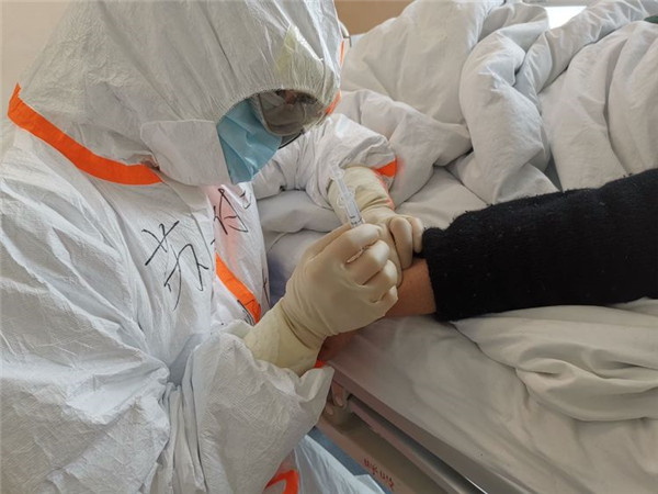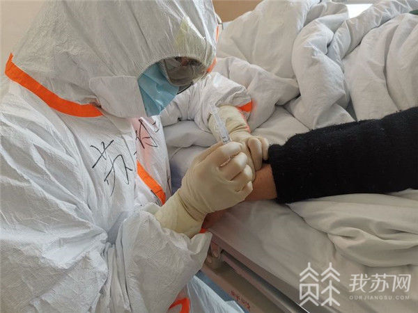 回想起第一天穿着黄色生化防护服进入隔离区的情形,确实有点不忍直视了!我们每一个队员都是大喘气样的呼吸,缺氧造成头胀头痛、乏力,甚至有队员呕吐,可为了不浪费物资硬生生咽下了呕吐物,就是这样我们都坚持下去了!现在的我们已经适应了这样的工作状态,穿着厚重的防护服为病人输液、抽血、喂饭、协助排便、打开水……