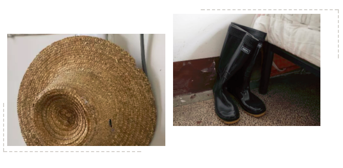 记不清有多少次,烈日下,他也是穿着这双雨靴、戴着这顶草帽,争分夺秒地清淤、修桥、拓渠,只为赶在汛期来临前完工,让农田不再受灾……