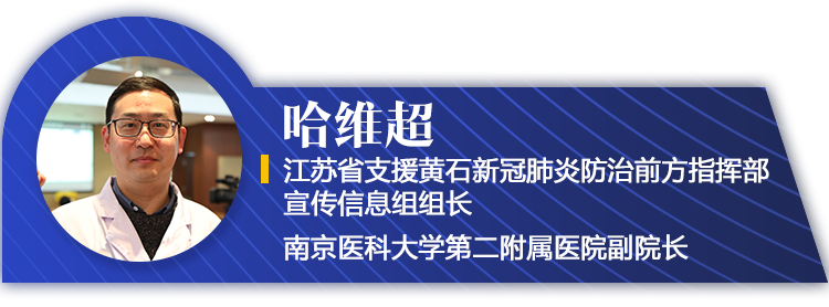大家好,我是苏对口支援黄石新冠肺炎防治前线指挥部宣传信息组组长哈维超,我来自南京医科大学第二附属医院。 为了进一步加强党的建设,把党旗插在黄石抗疫的最前线上,经请示中共江苏省卫生健康行业委员会批复同意,我们成立了江苏对口支援黄石医疗队临时党总支,由医疗队总指挥鲁翔同志任书记,下设14个临时党支部,共有144名党员,充分体现了党支部的战斗堡垒作用,强化了党组织对医疗支援工作的领导核心作用。