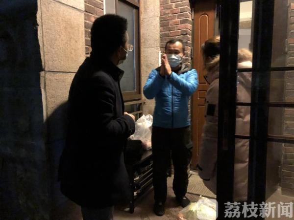 在南医大附属逸夫医院所在的江宁区,淳化街道大学城社区了解到有9位医护人员家属住在社区内。日前,社区相关工作人员冒着风雪,在社区书记杨胜的带领下,为医护人员家属送去了大米、果蔬、口罩等生活物资,对他们舍小家为大家的奉献精神表示感谢,“做好援湖北一线‘战士’最坚实的后盾是我们的义务,更是职责所在。”