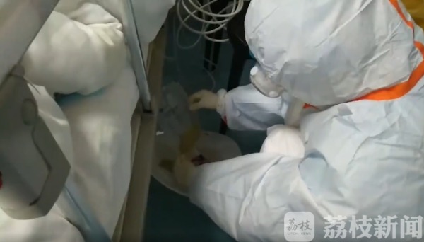 重症病区的工作强度非比寻常。身穿四层连体防护服,再佩戴护目镜,洪惠娟她们一忙就是四个小时,中途也无法喝水、上厕所。一个班下来,浑身又湿又酸,脸上都被印上深深的印痕。患者曹师傅说:”看到衣服上写了江苏,我们要感激他们,从江苏那么远来支援我们,舍小家顾大家 。“
