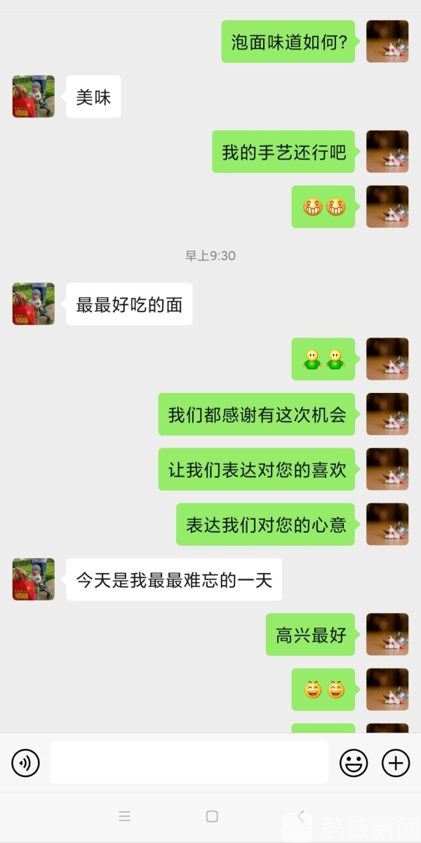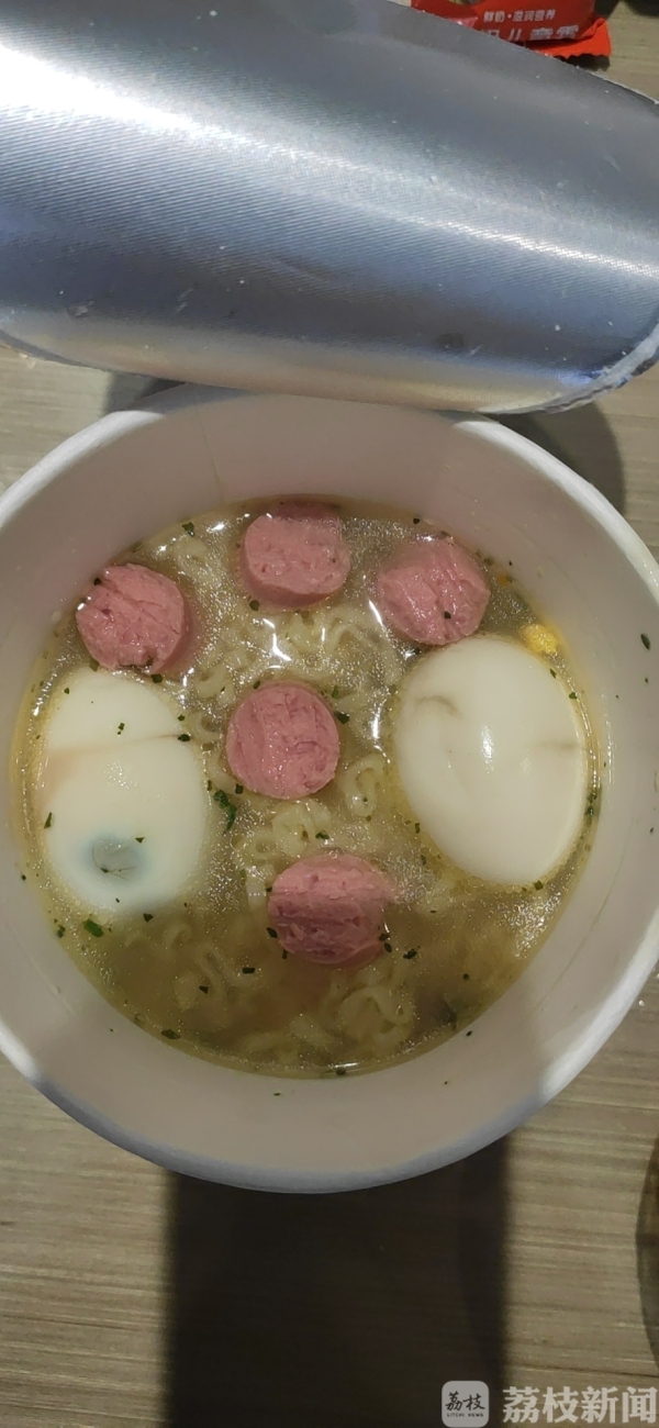 “这个红色气球,还有这个笑脸,都是我从包装筷子和食品袋子上剪下来的。”参与其中的蒋淑宏说,“我们就地取材,看到哪个喜庆,就剪哪个。没有的,就动手画剪下来。”就这样,她们分工协作,一直忙到夜里11点多。同时,她们还安排跟许珊同组的侯婷婷当“卧底”,精准掌握她们返回宾馆的时间。于是,这才有了开头那一幕。为了能让许珊吃上长寿面,小伙伴们特意把早餐的鸡蛋省了下来,一起放进了泡面里。
