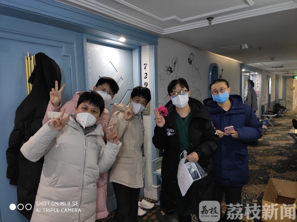 为驰援湖北、救治新冠肺炎患者,连云港东海县人民医院许珊、蒋淑宏、吴倩倩、侯婷婷、张利娟这“五朵金花”,随江苏省援助湖北医疗队奔赴战“疫”最前线。“2月14日,我们就陆续进入武汉体育中心方舱医院开展工作。”东海县人民医院新生儿科主管护师吴倩倩说,因工作特殊性,她们五人虽然同住一家宾馆,但每人一个房间,相互不能串门。工作时,许珊和侯婷婷在一组,吴倩倩、蒋淑宏、张利娟则被分配到另一组。2月23日,吴倩倩、蒋淑宏、张利娟三人是早班,从早上4点多起床,下午3点才回来。“虽然在方舱内工作,但是危险系数也比较高。我们每个人都要做好自我防护,思想压力还是有的。”吴倩倩说。