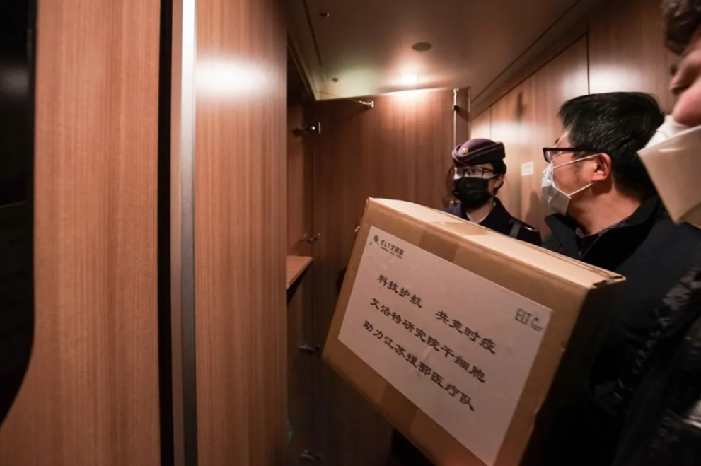 南京市新型冠状病毒肺炎防控工作指挥部,交通管控组与江宁公安分局特事特办,2月20日上午协调将干细胞从南京南站 VIP 通道转运上高铁列车,并安排专人看护。