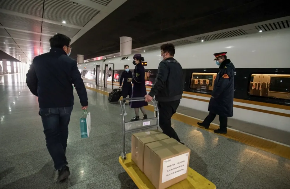 到达武汉后再由当地指挥部安排专人到站台指定车厢位置领取,全部过程控制在黄金六小时内。