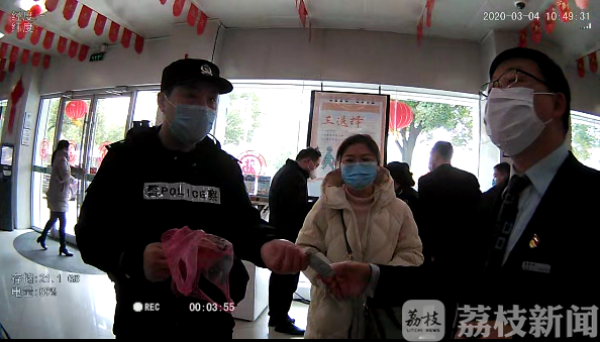 接警后,泰州市公安局高港分局口岸派出所民警赶到银行,通过银行监控视频发现,当日上午10点26分,一女子在银行自动柜员机防护仓内存钱,该女子一边存钱一边玩手机,钱还没有存好,女子就转身离去了。该女子走后,紧接着杨银飞到了该柜员机上,当准备插卡的时候,发现柜员机上有钱,他回头看了看,发现没人,立即掏出手机报警。在等待警方到来的时候,失主也返回到了银行,杨银飞为保险起见,告诉失主等民警来了返还。