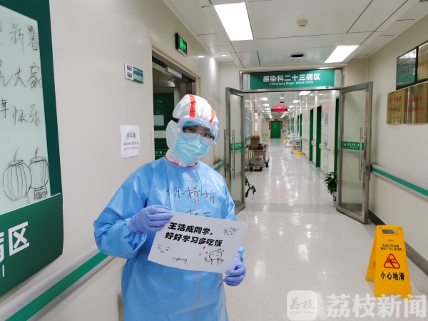经过陈婧婧等江苏医护的精心治疗,病区70个床位已经有16个重症病人成功出院。儿子王浩成也为妈妈加油打气:“妈妈,您一定要防护好,要注意身体,注意休息。”