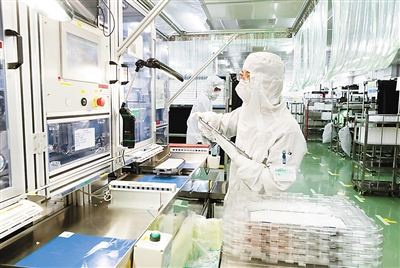 近日,日资企业江苏苏州高新区晶端显示精密电子(苏州)有限公司员工正在紧张生产中。华雪根摄(人民图片)