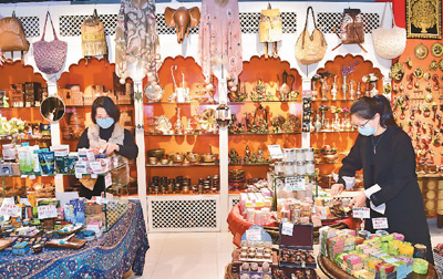 2月24日上午9点,义乌中国小商品城国际商贸城全面复市。图为当天义乌国际商贸城五区进口馆印度展区,客商选购印度异域特色商品。吕 斌摄(人民图片)