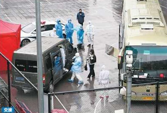 居住虹口、机场体温测量正常人员在虹口足球场外交接