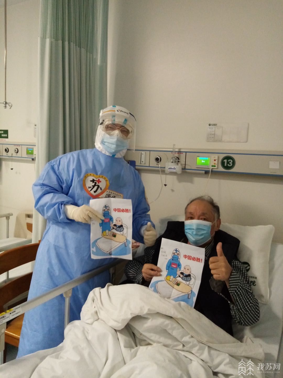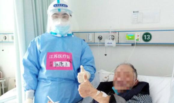 幸运的是,经过医护协作鼓励治疗后,老人家的病情逐渐好转,他自己也慢慢地乐观起来。渐渐地,老人的生活也能自理,且连续四次的核酸检测结果都呈阴性。在一次查房时,老人家非常感谢我们,并且主动要求和我合影,于是就有了那张我和老人家共同竖起大拇指点赞的照片,老人家也非常喜欢那张照片。