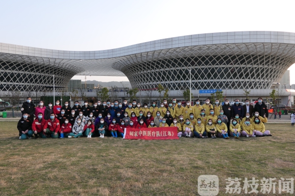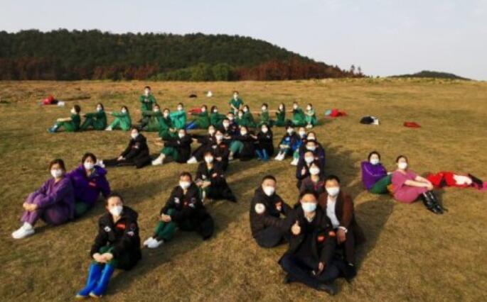 武汉首个以中医为主的方舱医院——武汉江夏区大花山方舱医院最后一批治愈患者出院。随后,该方舱医院宣告休舱,医务人员休整待命。在武汉江夏区大花山方舱医院,有75名江苏中医医疗队员参加国家中医医疗队。昨天休舱,这些医护人员也用自己的方式告别方舱。75名队员摆出了“苏”字的造型。患者零死亡,零回头,医护人员零感染,江苏医疗队打了一场胜仗。