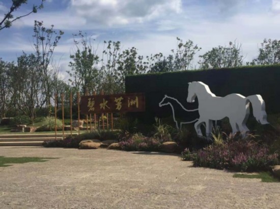 三匹镂空的白马和一排倒置的船桨彰显着“南船北马、舍舟登陆”的古意,主入口马槽中种植的水稻,开园时金灿灿的一片,甚是美观……这是江苏省第十届园艺博览会淮安园的景象,这组名为“碧水芳洲”的主题设计,通过地形、水系、植被、景观建筑、园林小品等,展现里下河湿地风光和淮安的漕运文化,彰显了淮安园林的独特魅力,让置身其中的游客感受当年“壮丽东南第一州”的繁荣景象。